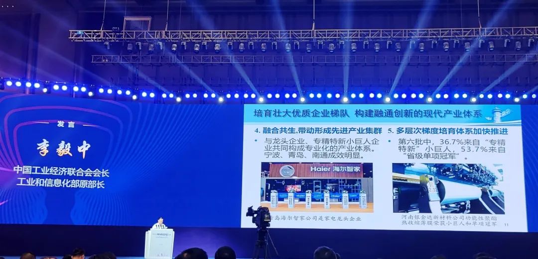 李毅中會(huì)長(zhǎng)在講話中,把銀金達(dá)由“專(zhuān)精特新”小巨人成長(zhǎng)為單項(xiàng)冠軍示范企業(yè)的發(fā)展經(jīng)驗(yàn)作為了典型案例。