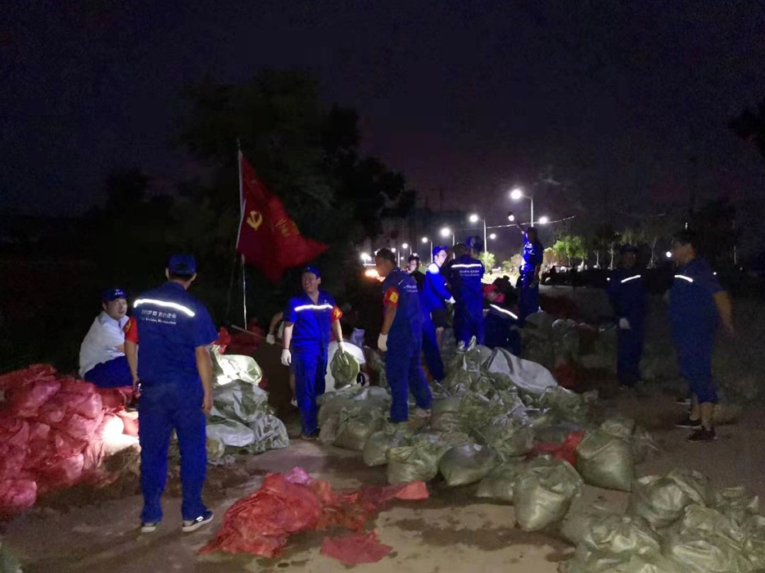 2021年7月28日下午2時(shí),銀金達(dá)抗洪救災(zāi)志愿者奔赴七里鋪至衛(wèi)共橋筑壩現(xiàn)場(chǎng),參加修筑攔洪堤壩,一直戰(zhàn)斗到深夜九時(shí)。